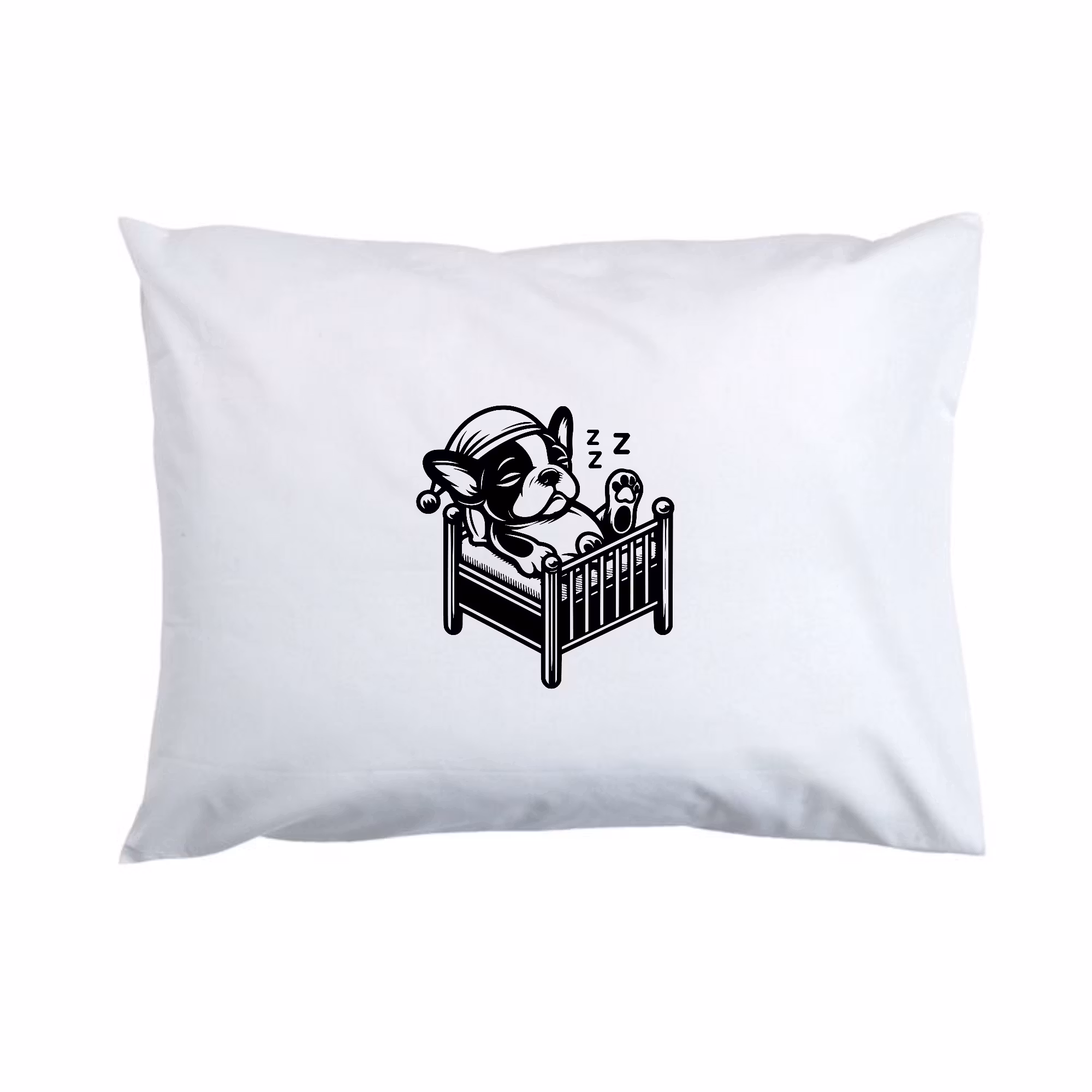 Fransk bulldogg / säng - örngott Pris 199 kr Motiv Fralla i säng Lägg i korgen Dela: Information Recensioner Örngott vitt med svart tryck.
